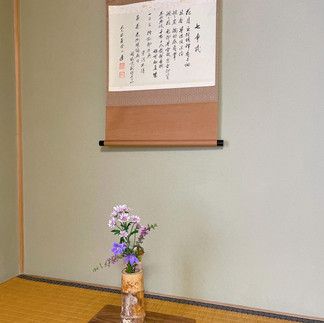 仙遊之式は「難しい且坐之式」的立ち位置で、全員で花を活けたり、略炭ではなく本炭所望だったり、お香を二回焚いたり、薄茶は花月で行ったりと盛りだくさんな七事式となります。